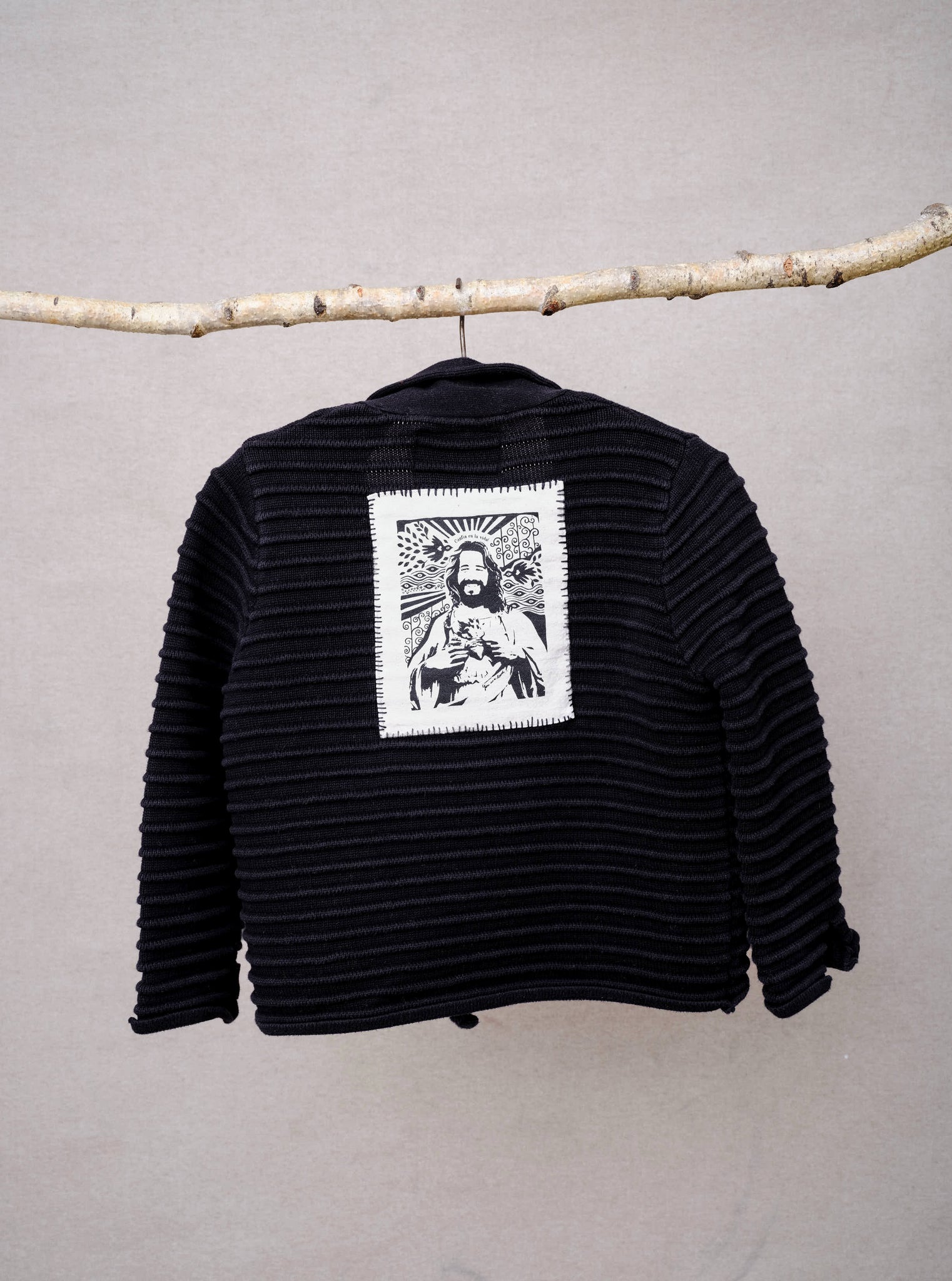 Sítotisk ekologickou černou barvou na bavlněném plátně.