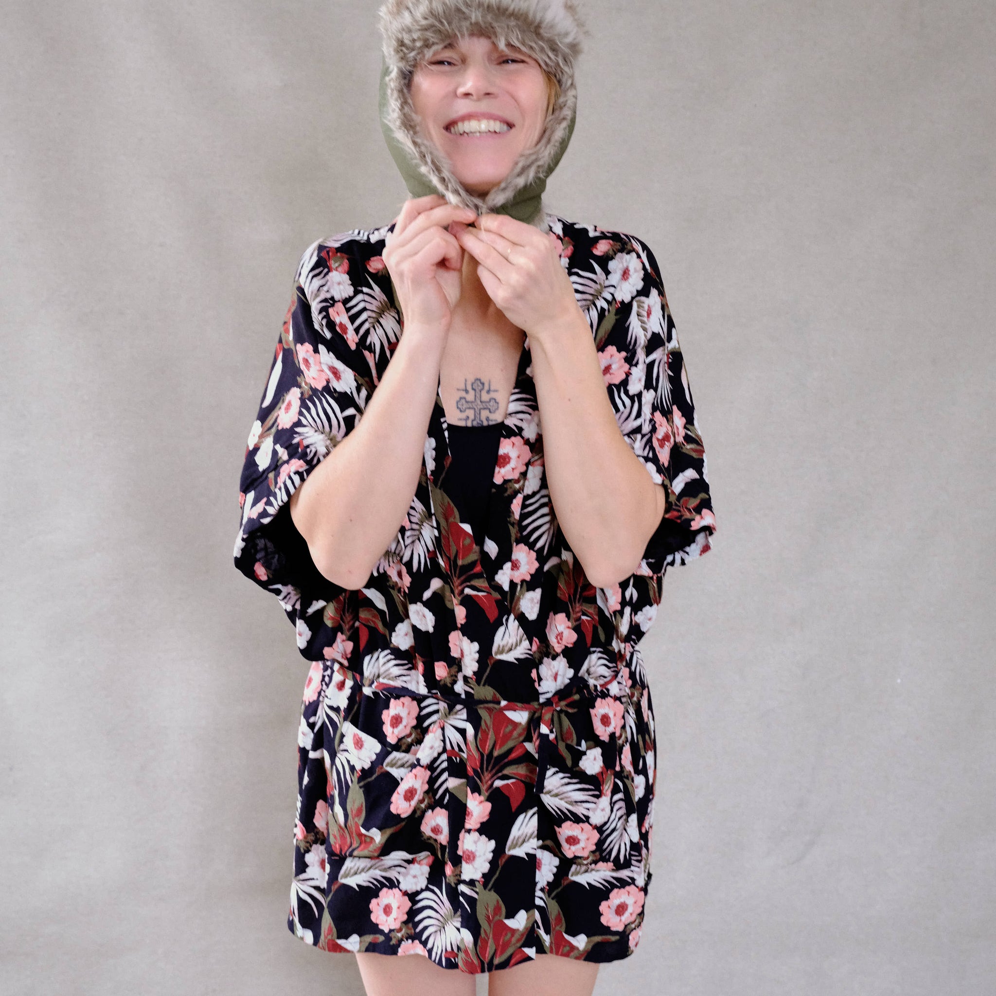 Upcyklovaný květinovýlehký župánek/krátké kimono  značky Scotch&Soda, zakoupené z druhé ruky.